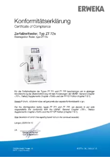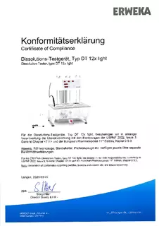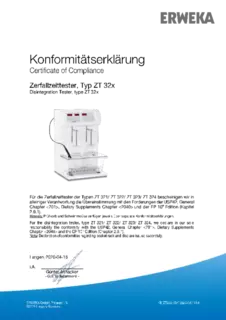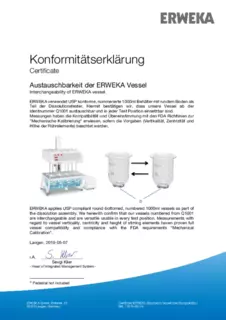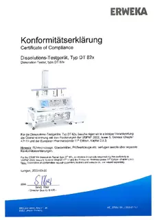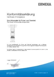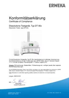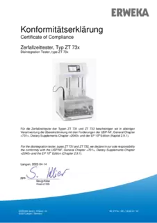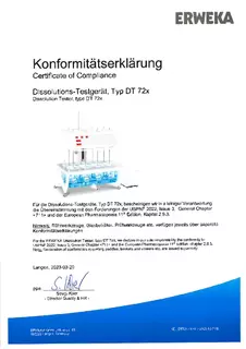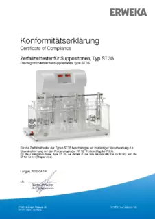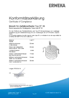 Certificate of Compliance - Basket Apparatus for Disintegration Tester, Type ST 35