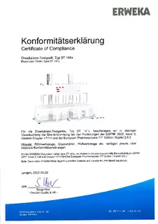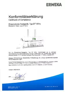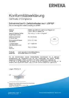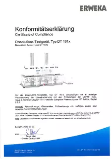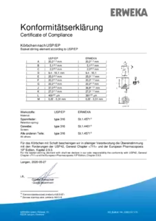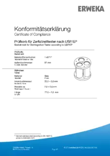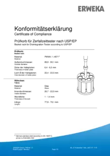 Certificate of Compliance - Basket Rack for Disintegration Tester According to USP / EP, Apparatus A